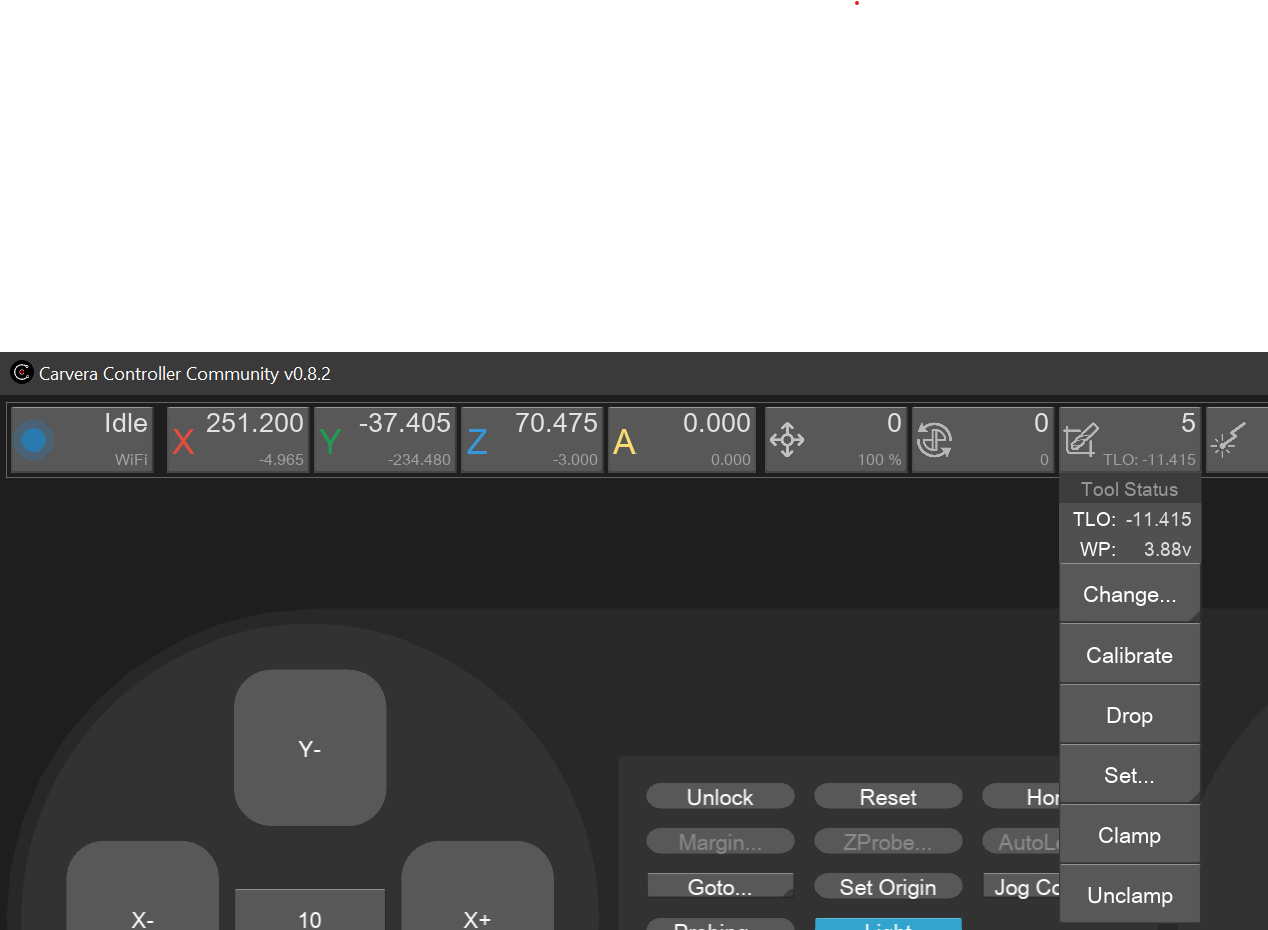 * **Collet Clamp/Unclamp** buttons in Tool Changer menu for the original Carvera