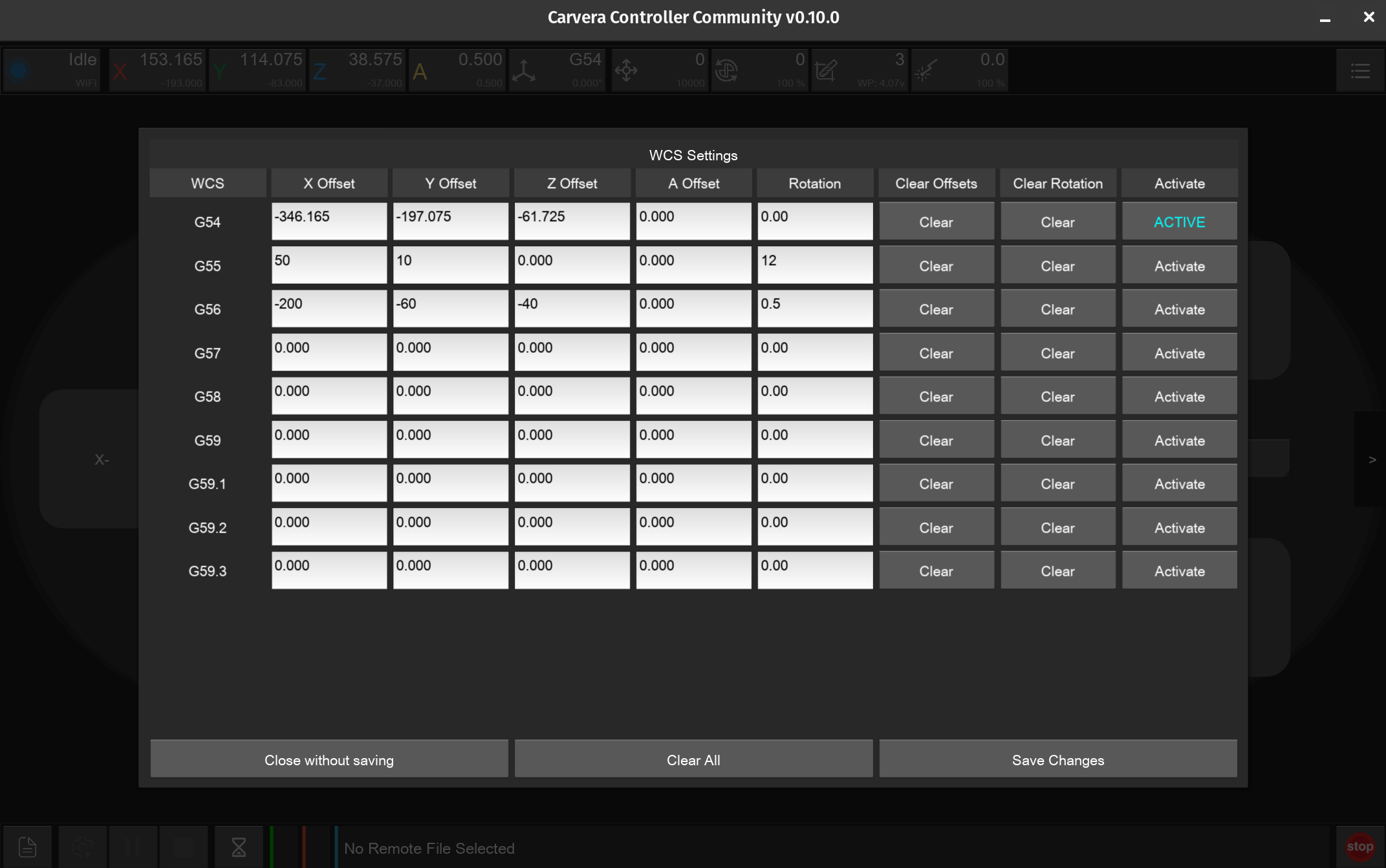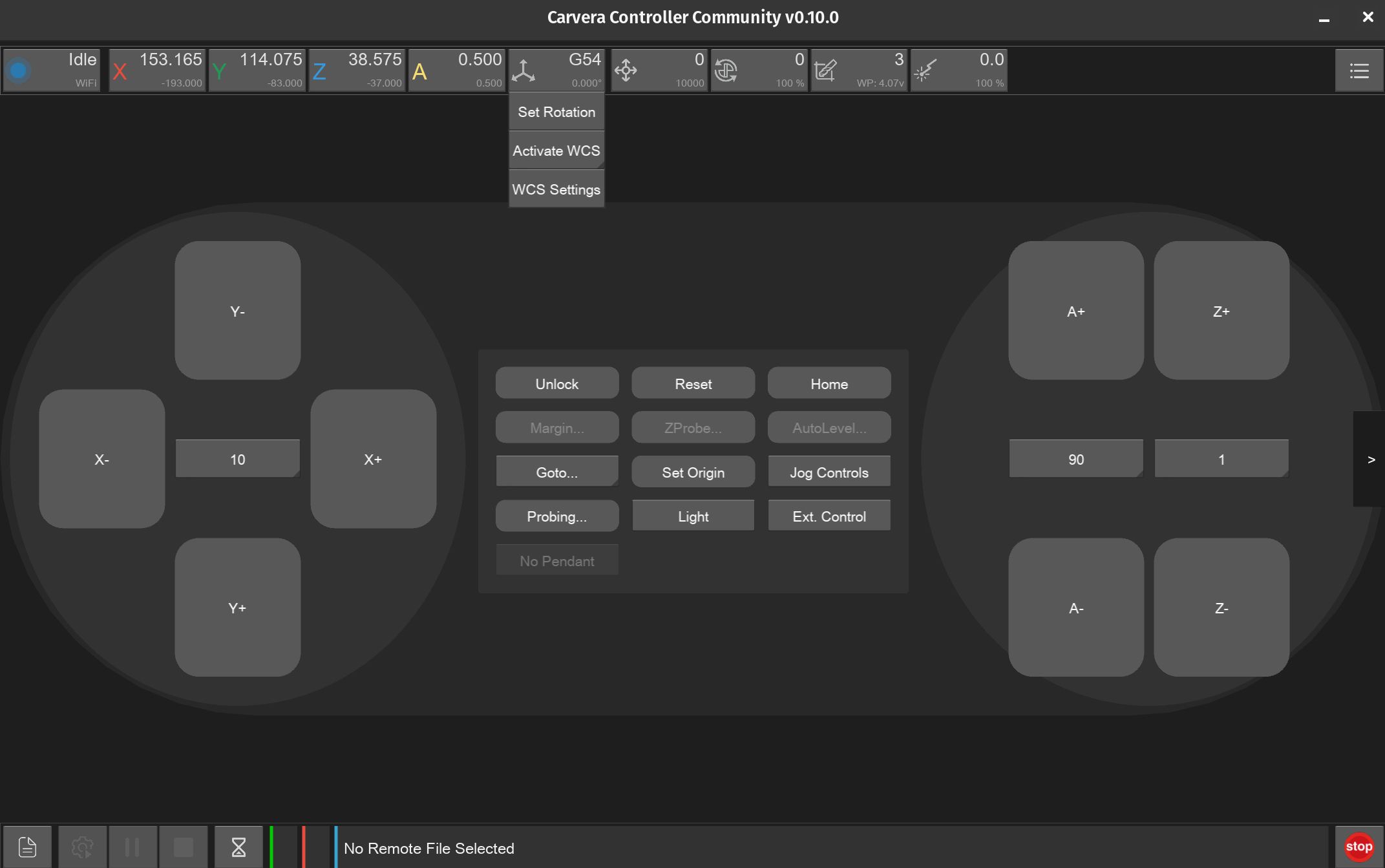 * [**Workspace Management**](https://carvera-community.gitbook.io/docs/controller/features/workspace-management) options supporting multiple Work Coordinate Systems (WCS) From G54 to G59.3