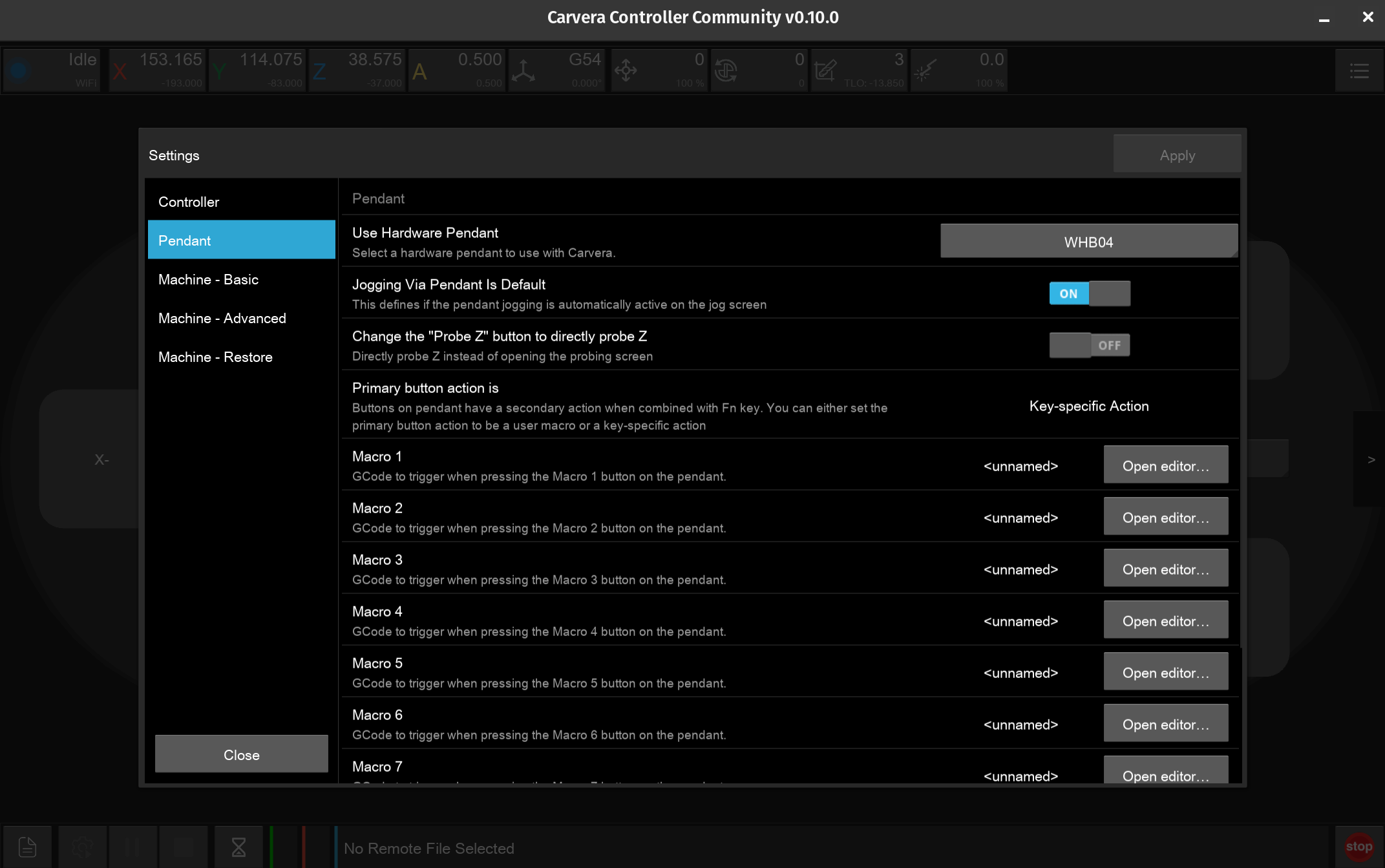 * [**Pendant** device support](https://carvera-community.gitbook.io/docs/controller/features/pendant-support) of **WHB04** family of **MPG devices**. Such devices can be used to jog, run macros, and perform feed/speed overrides.
