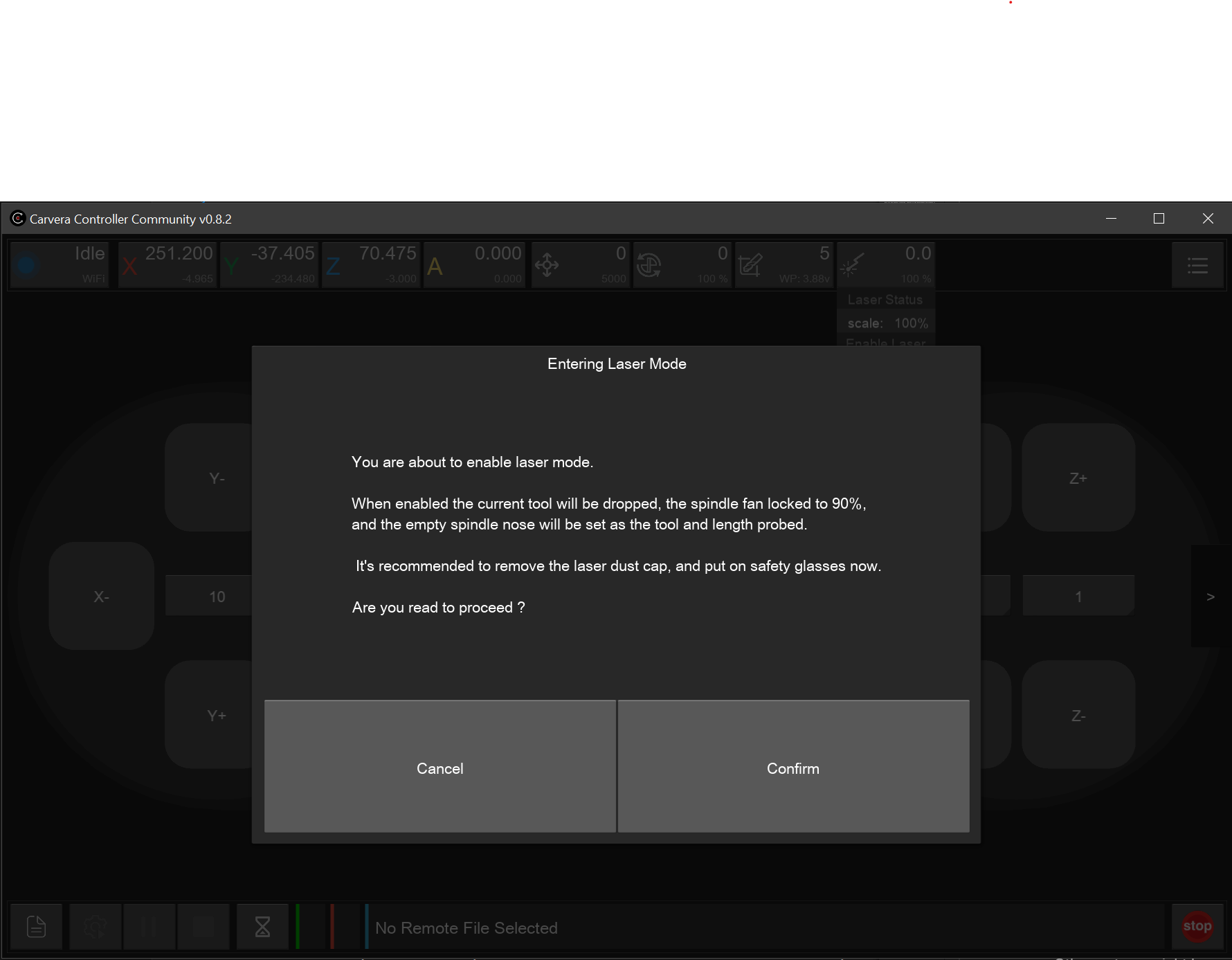 <figure><img src="https://796221717-files.gitbook.io/~/files/v0/b/gitbook-x-prod.appspot.com/o/spaces%2FhIcl2yLv4r2ehdkJpmlK%2Fuploads%2Fgit-blob-a395902d6ed60c2b3c5e0a06bda03e6b4361c868%2Flaser_safety_prompt.png?alt=media" alt=""><figcaption><p>Laser Safety Prompt</p></figcaption></figure>