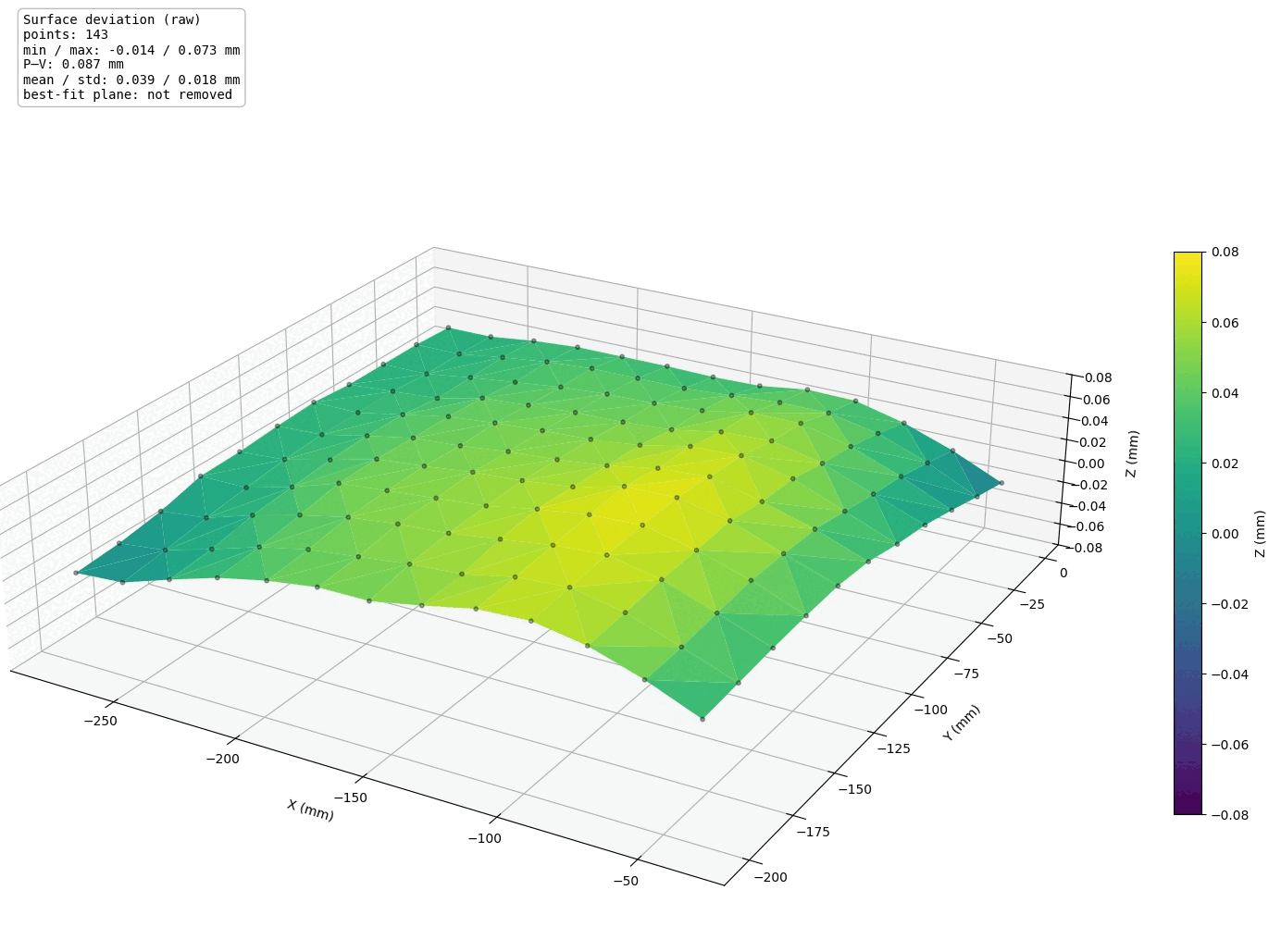 With the flex compensation enabled every single move that the machine executes is compensated in order to have the **Tool Center Point** (TCP) follow straight lines. Therefore all probing moves, including the bed leveling is compensated. Figure 2 shows a comparison of a full bed level of a [Saunders Machine Works (SMW) tooling plate](https://saundersmachineworks.com/products/makera-carvera-air-fixture-tooling-plate) before and after the flex compensation. The SMW has been used for this comparison as it has less surface deviations than the stock Carvera Air MDF bed.